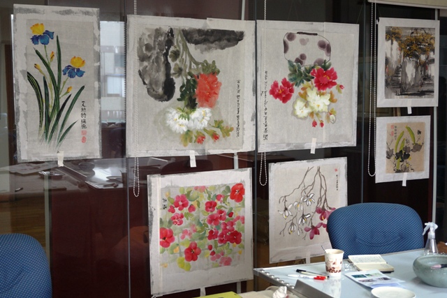 Séance d’encollage des oeuvres